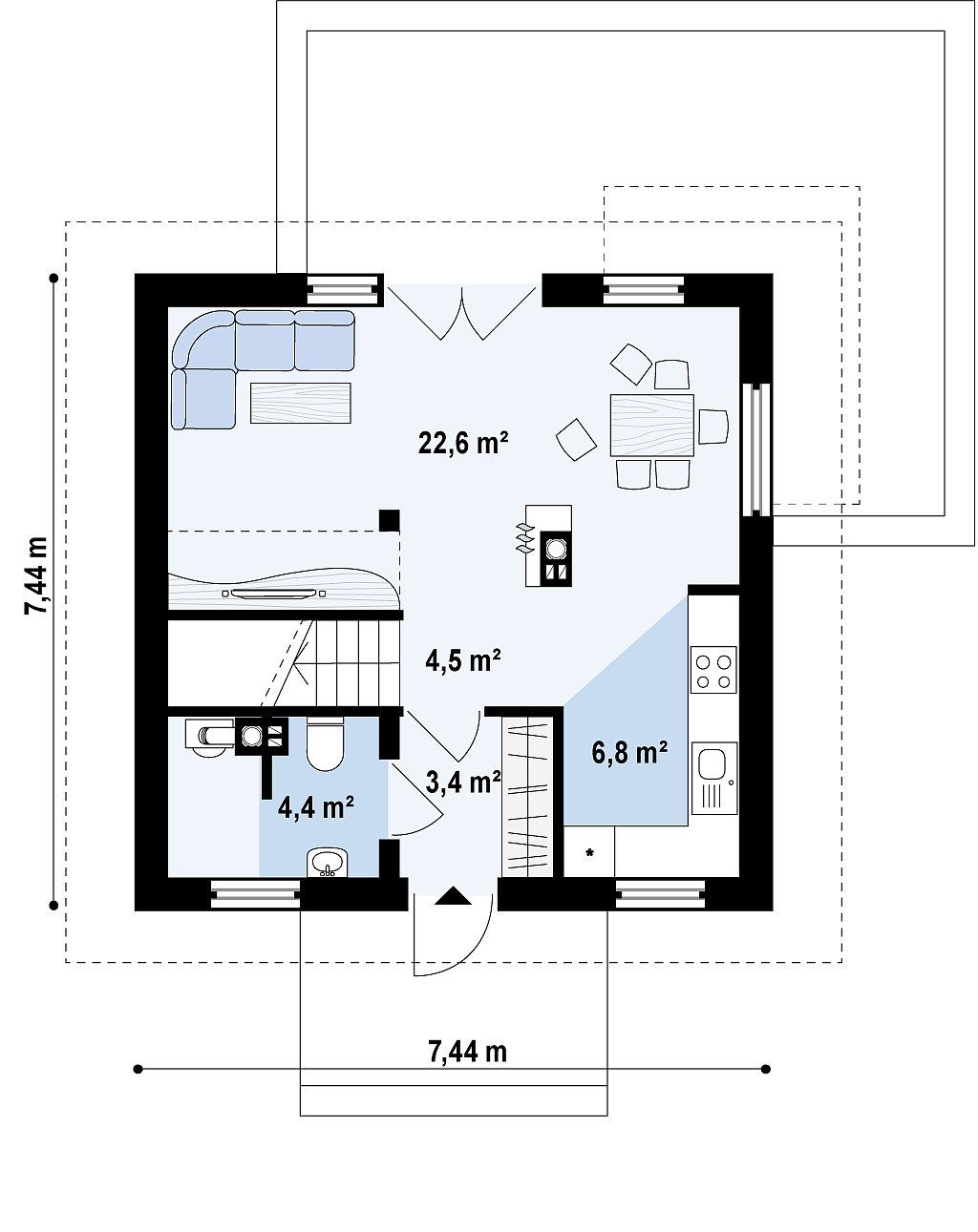 Данная комплектация представлена в виде базовой. Так же, она может быть изменена по вашему желанию, как по планировке, так и по виду строительного материала.