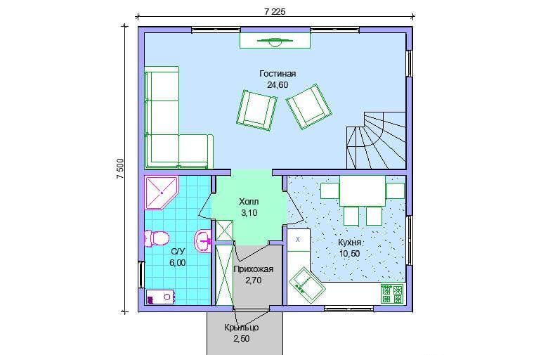 Данная комплектация представлена в виде базовой. Так же, она может быть изменена по вашему желанию, как по планировке, так и по виду строительного материала.