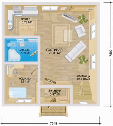 Данная комплектация представлена в виде базовой. Так же, она может быть изменена по вашему желанию, как по планировке, так и по виду строительного материала.