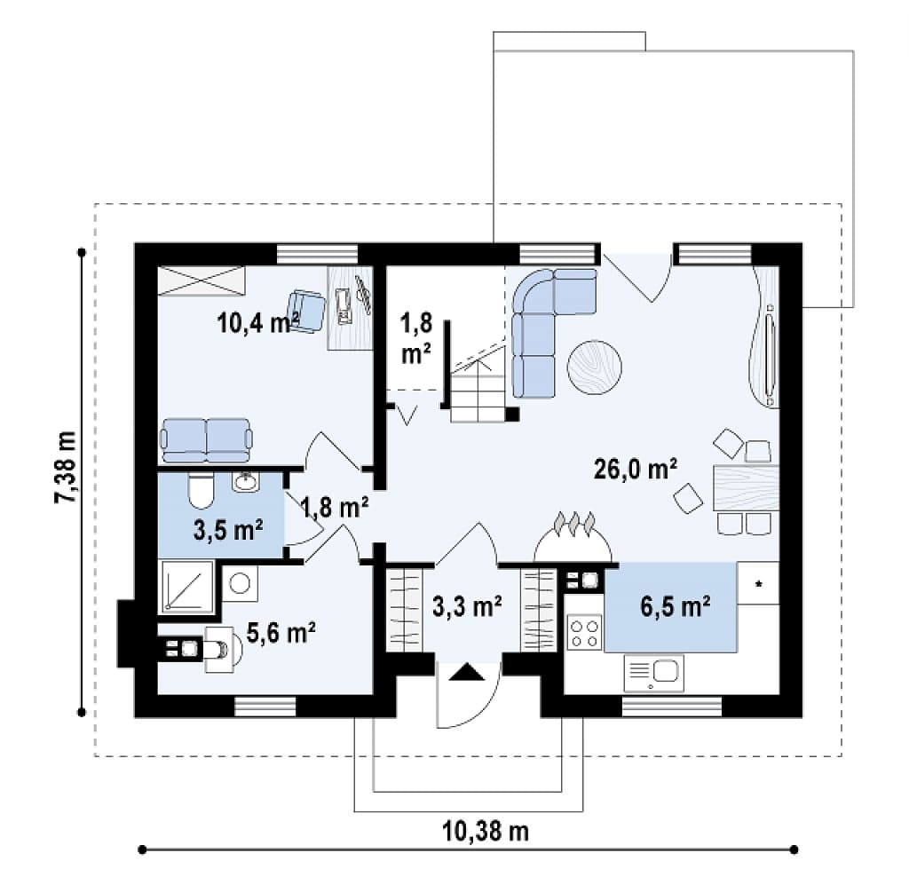 Данная комплектация представлена в виде базовой. Так же, она может быть изменена по вашему желанию, как по планировке, так и по виду строительного материала.