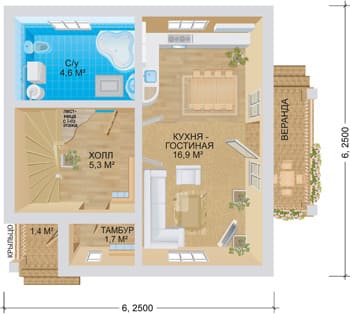 Данная комплектация представлена в виде базовой. Так же, она может быть изменена по вашему желанию, как по планировке, так и по виду строительного материала.